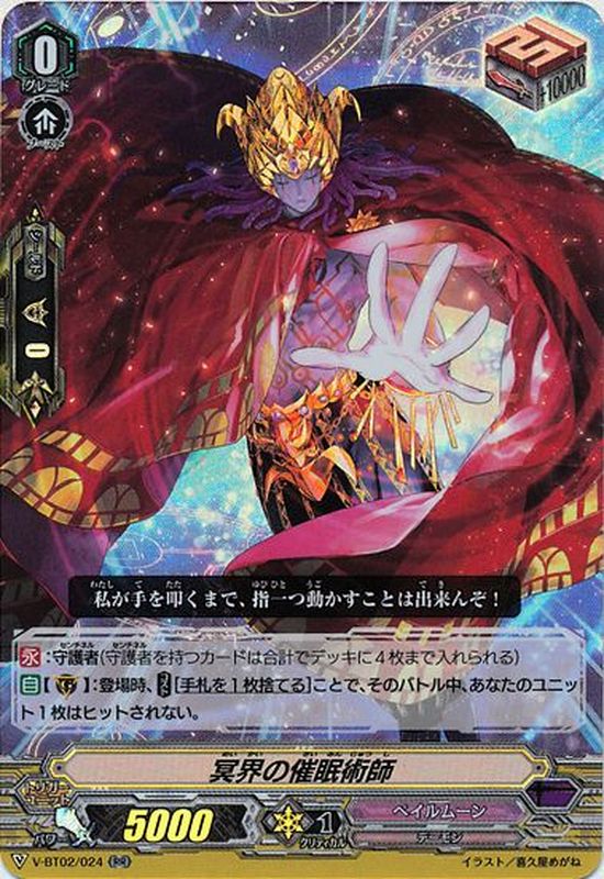 【永】:守護者(守護者を持つカードは合計でデッキに4枚まで入れられる)【自】【(G)】:登場時、【コスト】[手札を1枚捨てる]ことで、そのバトル中、あなたのユニット1枚はヒットされない。