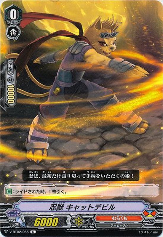 【自】:ライドされた時、1枚引く。さらに、相手のヴァンガードがグレード1以上なら、あなたはクイックシールド・チケットを1枚手札に加える。
