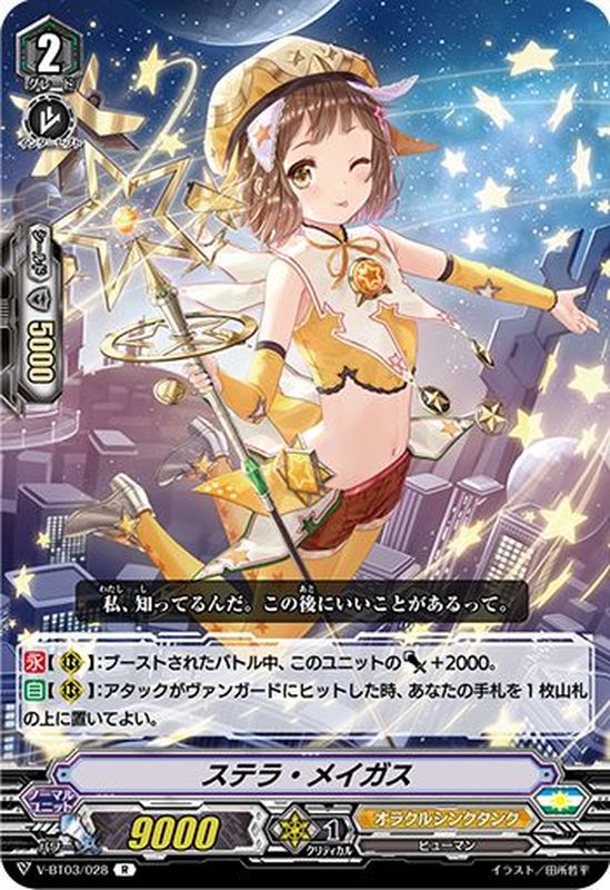 【永】【(R)】:ブーストされたバトル中、このユニットのパワー+2000。【自】【(R)】:アタックがヴァンガードにヒットした時、あなたの手札を1枚山札の上に置いてよい。