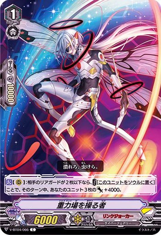 【起】【(R)】:相手のリアガードが2枚以下なら、【コスト】[このユニットをソウルに置く]ことで、そのターン中、あなたのユニット3枚のパワー+4000。