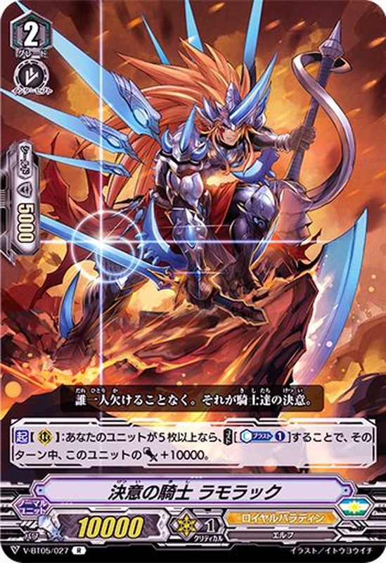 【起】【(R)】:あなたのユニットが5枚以上なら、【コスト】[【カウンターブラスト】(1)]することで、そのターン中、このユニットのパワー+10000。