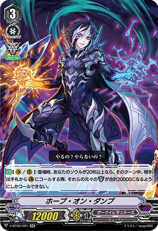【自】【(V)/(R)】:登場時、あなたのソウルが20枚以上なら、そのターン中、相手は手札から(G)にコールする際、それらの元々のシールドが合計20000になるようにしかコールできない。