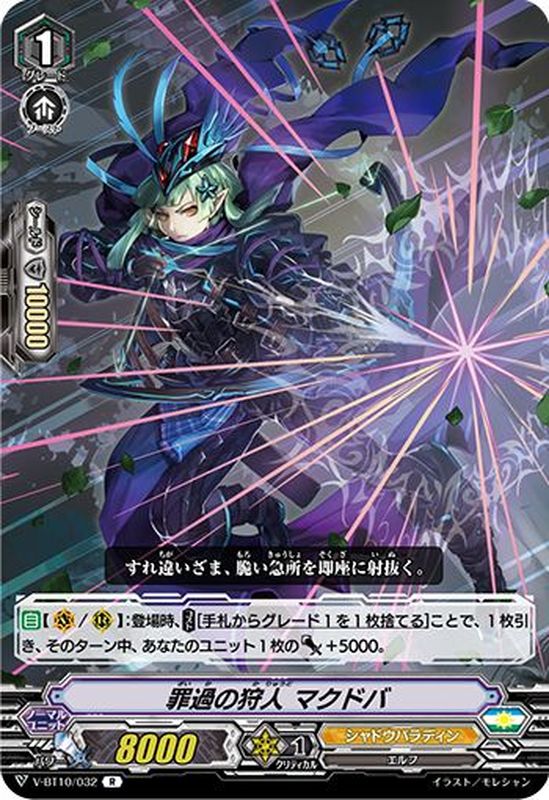 【自】【(V)/(R)】:登場時、【コスト】[手札からグレード1を1枚捨てる]ことで、1枚引き、そのターン中、あなたのユニット1枚のパワー+5000。