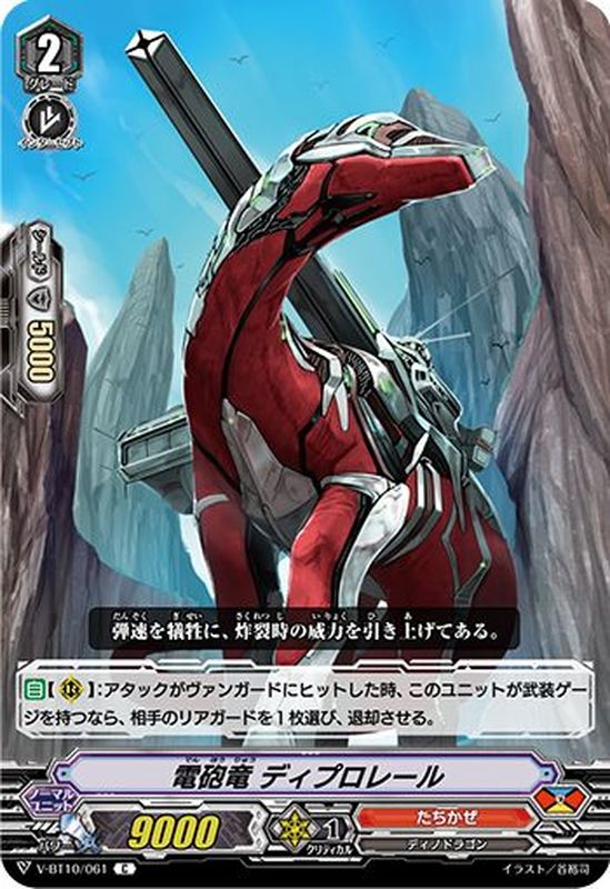 【自】【(R)】:アタックがヴァンガードにヒットした時、このユニットが武装ゲージを持つなら、相手のリアガードを1枚選び、退却させる。