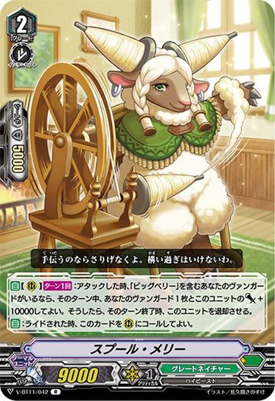 【自】【(R)】【ターン1回】:アタックした時、「ビッグベリー」を含むあなたのヴァンガードがいるなら、そのターン中、あなたのヴァンガード1枚とこのユニットのパワー+10000してよい。そうしたら、そのターン終了時、このユニットを退却させる。【自】:ライドされた時、このカードを(R)にコールしてよい。