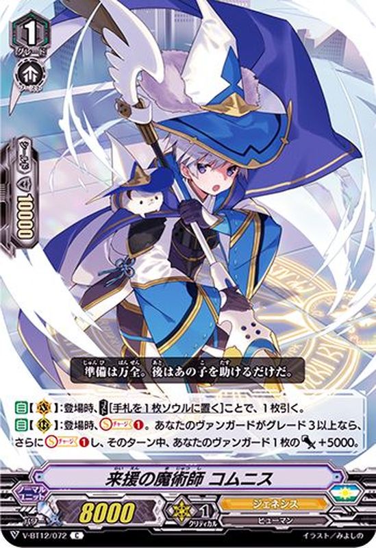 【自】【(V)】:登場時、【コスト】[手札を1枚ソウルに置く]ことで、1枚引く。【自】【(R)】:登場時、【ソウルチャージ】(1)。あなたのヴァンガードがグレード3以上なら、さらに【ソウルチャージ】(1)し、そのターン中、あなたのヴァンガード1枚のパワー+5000。