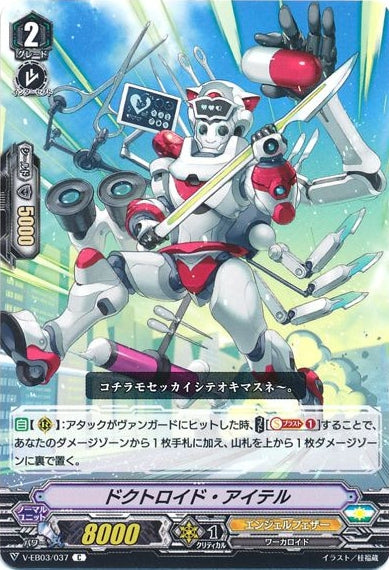 【自】【(R)】:アタックがヴァンガードにヒットした時、【コスト】[【ソウルブラスト】(1)]することで、あなたのダメージゾーンから1枚手札に加え、山札を上から1枚ダメージゾーンに裏で置く。