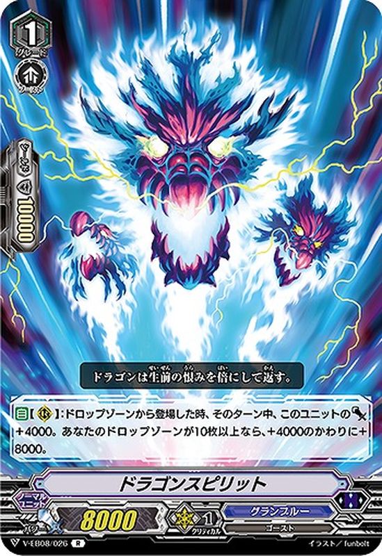 【自】【(R)】:ドロップゾーンから登場した時、そのターン中、このユニットのパワー+4000。あなたのドロップゾーンが10枚以上なら、+4000のかわりに+8000。