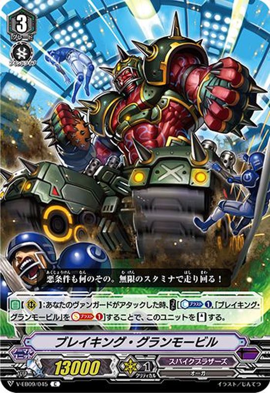 【自】【(R)】:あなたのヴァンガードがアタックした時、【コスト】[【カウンターブラスト】(1),「ブレイキング・グランモービル」を【ソウルブラスト】(1)]することで、このユニットを【スタンド】する。