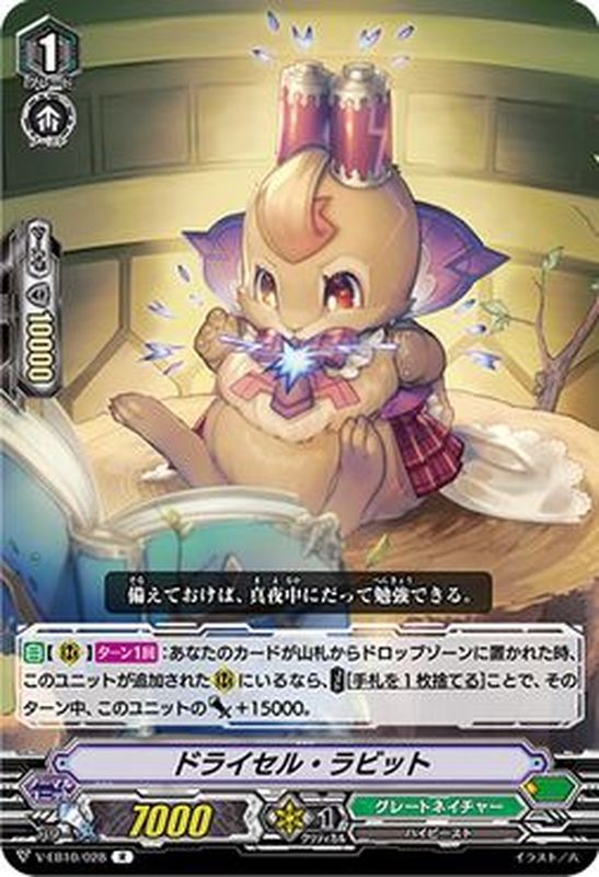 【自】【(R)】【ターン1回】:あなたのカードが山札からドロップゾーンに置かれた時、このユニットが追加された(R)にいるなら、【コスト】[手札を1枚捨てる]ことで、そのターン中、このユニットのパワー+15000。