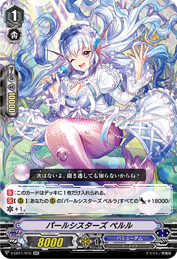 【永】:このカードはデッキに1枚だけ入れられる。【永】【(R)】:あなたの(R)の「パールシスターズ ペルラ」すべてのパワー+18000/クリティカル+1。