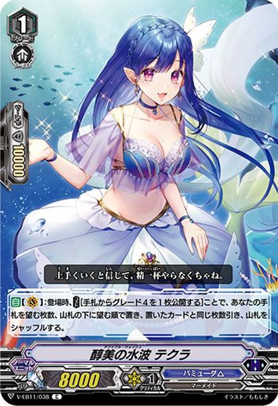【自】【(V)】:登場時、【コスト】[手札からグレード4を1枚公開する]ことで、あなたの手札を望む枚数、山札の下に望む順で置き、置いたカードと同じ枚数引き、山札をシャッフルする。