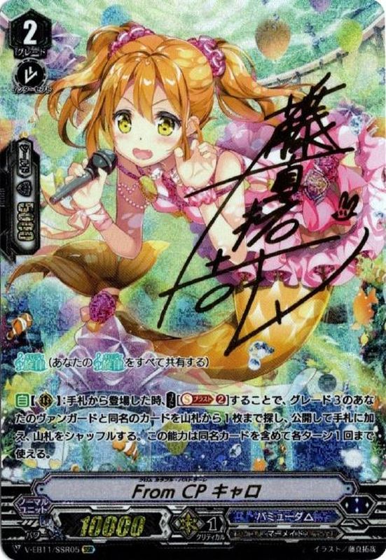 【旋律】(あなたの【旋律】をすべて共有する)【自】【(R)】:手札から登場した時、【コスト】[【ソウルブラスト】(2)]することで、グレード3のあなたのヴァンガードと同名のカードを山札から1枚まで探し、公開して手札に加え、山札をシャッフルする。この能力は同名カードを含めて各ターン1回まで使える。