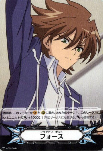 獲得時、このマーカーを(V)か(R)に置き、あなたのターン中、このサークルにいるユニットのパワー+10000!(同じサークルにも置ける。パワーも重複する)