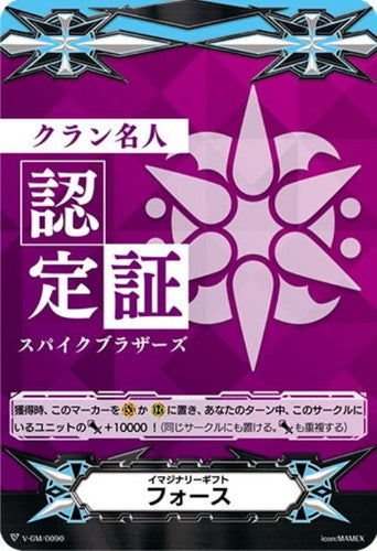 獲得時、このマーカーを(V)か(R)に置き、あなたのターン中、このサークルにいるユニットのパワー+10000!(同じサークルにも置ける。パワーも重複する)