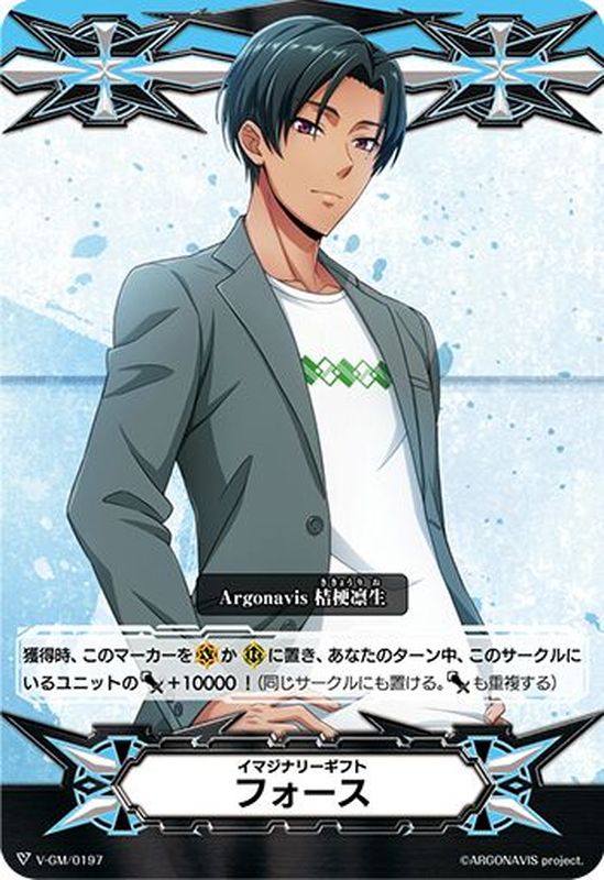 獲得時、このマーカーを(V)か(R)に置き、あなたのターン中、このサークルにいるユニットのパワー+10000!(同じサークルにも置ける。パワーも重複する)