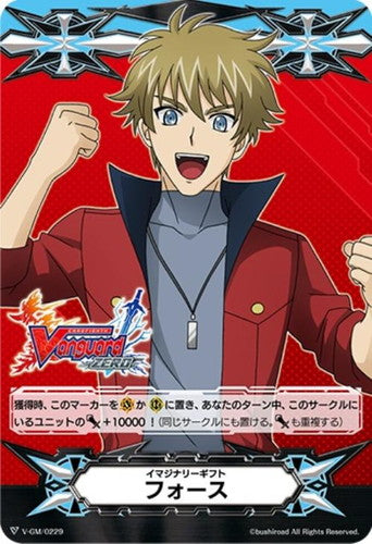 獲得時、このマーカーを(V)か(R)に置き、あなたのターン中、このサークルにいるユニットのパワー+10000!(同じサークルにも置ける。パワーも重複する)