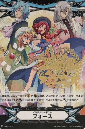獲得時、このマーカーを(V)か(R)に置き、あなたのターン中、このサークルにいるユニットのパワー+10000!(同じサークルにも置ける。パワーも重複する)