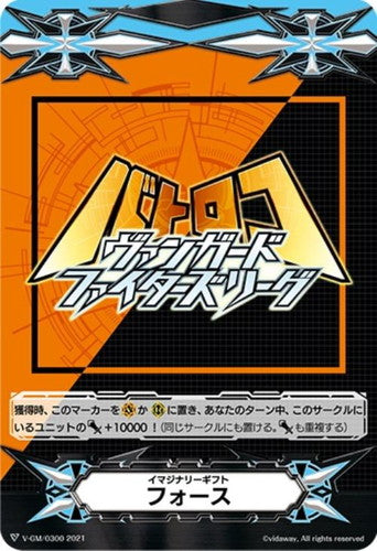 獲得時、このマーカーを(V)か(R)に置き、あなたのターン中、このサークルにいるユニットのパワー+10000!(同じサークルにも置ける。パワーも重複する)