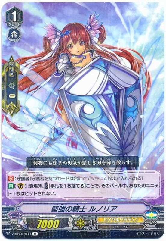 【永】:守護者(守護者を持つカードは合計でデッキに4枚まで入れられる)【自】【(G)】:登場時、【コスト】[手札を1枚捨てる]ことで、そのバトル中、あなたのユニット1枚はヒットされない。