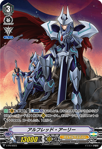 【自】【(V)】:登場時、【コスト】[【カウンターブラスト】(1)]することで、あなたの、手札かソウルから「ブラスター・ブレード」を1枚まで(R)にコールし、そのターン中、そのユニットのパワー+10000。コールしたら、1枚引く。