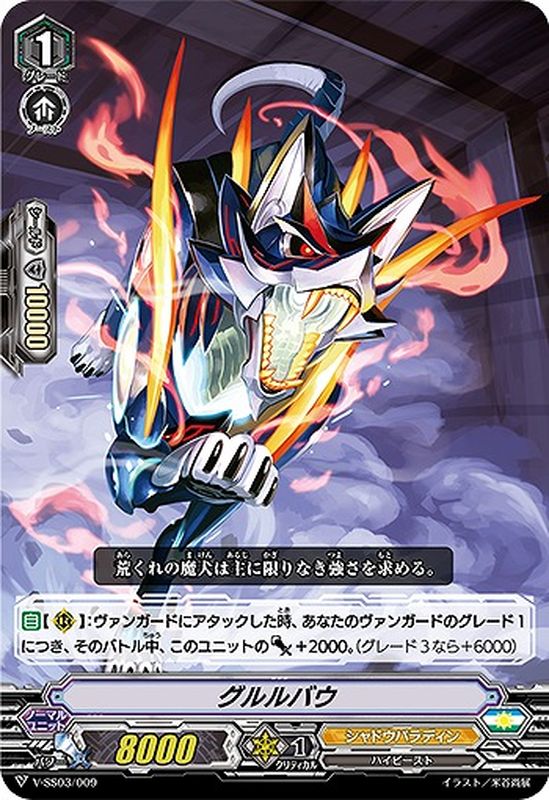 【自】【(R)】:ヴァンガードにアタックした時、あなたのヴァンガードのグレード1につき、そのバトル中、このユニットのパワー+2000。(グレード3なら+6000)