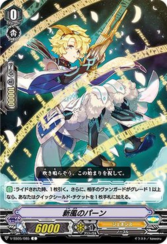 【自】:ライドされた時、1枚引く。さらに、相手のヴァンガードがグレード1以上なら、あなたはクイックシールド・チケットを1枚手札に加える。