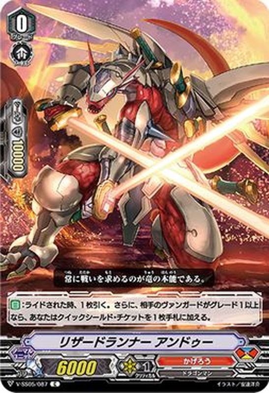 【自】:ライドされた時、1枚引く。さらに、相手のヴァンガードがグレード1以上なら、あなたはクイックシールド・チケットを1枚手札に加える。