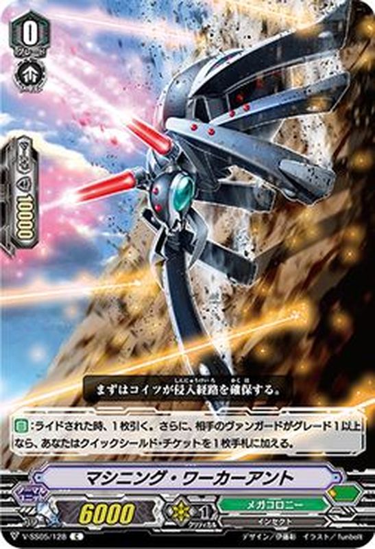 【自】:ライドされた時、1枚引く。さらに、相手のヴァンガードがグレード1以上なら、あなたはクイックシールド・チケットを1枚手札に加える。