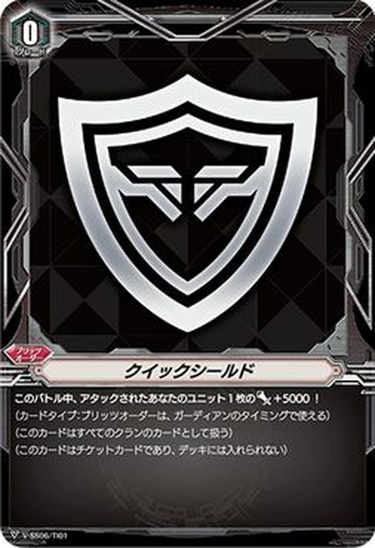 このバトル中、アタックされたあなたのユニット1枚のパワー+5000!(カードタイプ:ブリッツオーダーは、ガーディアンのタイミングで使える)(このカードはすべてのクランのカードとして扱う)(このカードはチケットカードであり、デッキには入れられない)