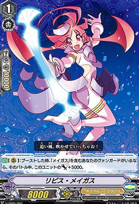 【自】【(R)】:ブーストした時、「メイガス」を含むあなたのヴァンガードがいるなら、そのバトル中、このユニットのパワー+5000。